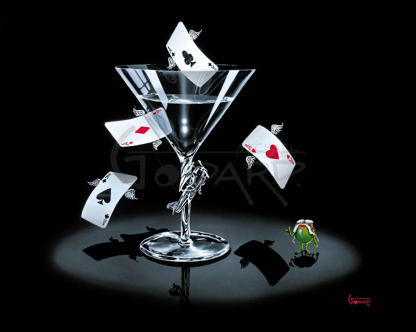 This piece is an aviation piece with a fun play on words. In aviation slang, the best pilot is deemed an “Ace”. In the glass stem is a blown glass bi-plane and the olive sports his flying goggles.